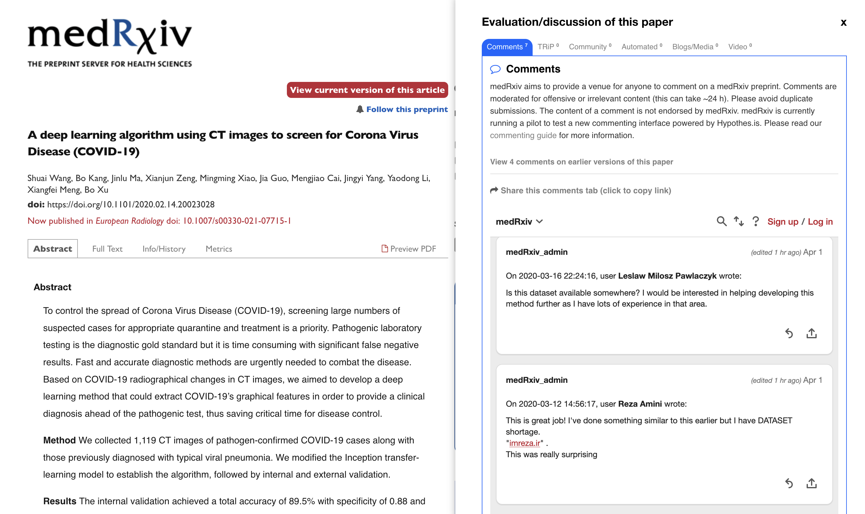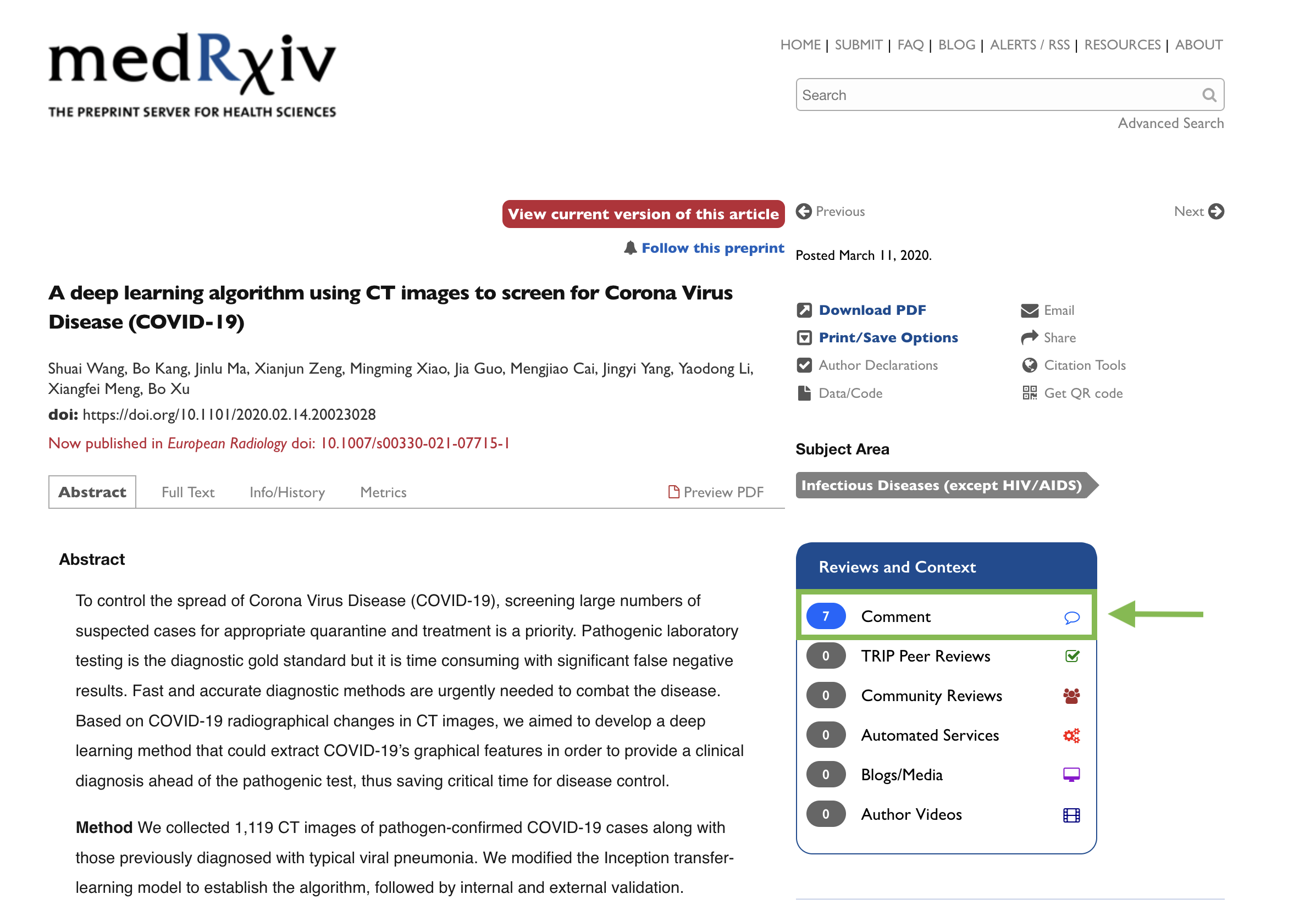 At medRxiv we support the rapid sharing of science by enabling researchers to make their findings immediately available to the scientific community. The dedicated medRxiv comment section allows readers to respond publicly with feedback or queries about manuscripts. Comments allow anyone interested in a particular preprint to pose questions and share constructive criticism and/or resources with both the authors and the rest of the community, which can help improve the manuscript. Comments can take a variety of forms as long as they are relevant to the preprint. For example, a comment can contain additional references, questions or clarifications on methods, requests for additional information to the authors, or even full peer reviews.Authors are free to engage with readers in the comment section, addressing any issues raised or clarifying the content of their preprint. Additionally, shifting private communications (traditionally done by email) to the public comment forum may benefit the community at large. Authors will likely save time answering common questions only once, and readers will have instant access to information that might have taken longer to obtain otherwise.